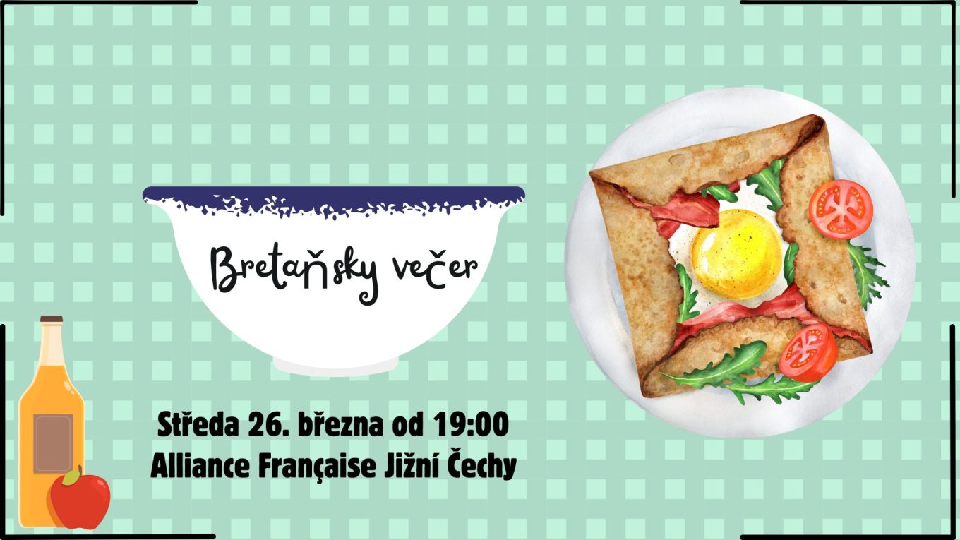 Navrhujeme večer s krátkou prezentací Bretaně, po které bude následovat jídlo v podobě slaných bretaňských galet (šunka, vejce, sýr) a sladkých (cukr, džem, čokoláda) s možností pití cideru.