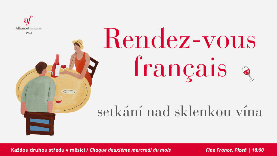 Chaque deuxième mercredi du mois à 18h dans le bar a vin à Fine France à lieu une rencontre de conversation visant à réunir la communauté française et tchèque autour d’un verre de vin. De plus, vous avez la possibilité de manger du fromage français.